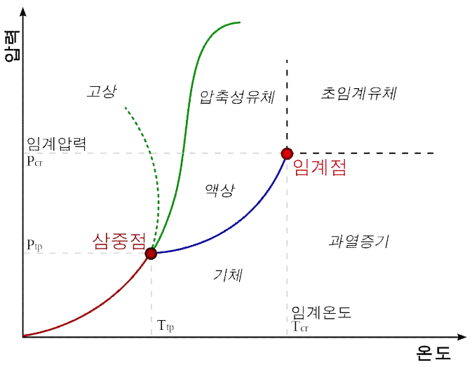 임계점 근처의 물질 상태로는 순수한 물질의 온도-압력 상 그림에서
