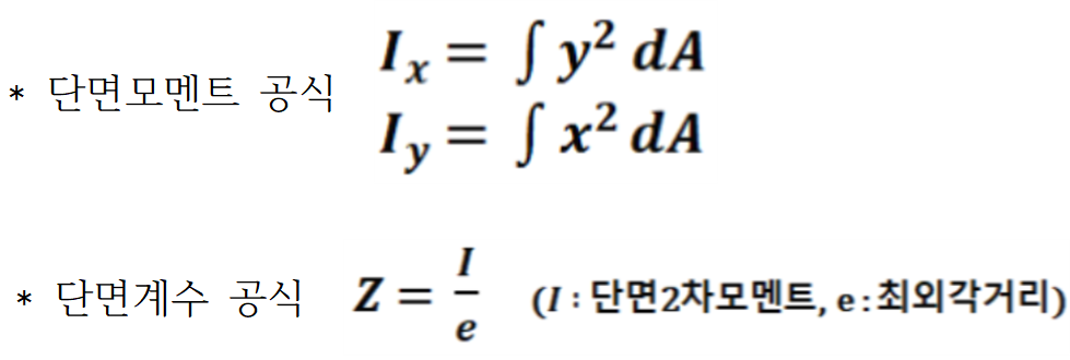 단면2차 모멘트를 통해서 구할 수 있다. 여기서 단면2차 모멘트는