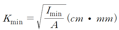 최소인 최소단면 2차모멘트의 값을 그 단면적으로 나눈값의 제곱근을